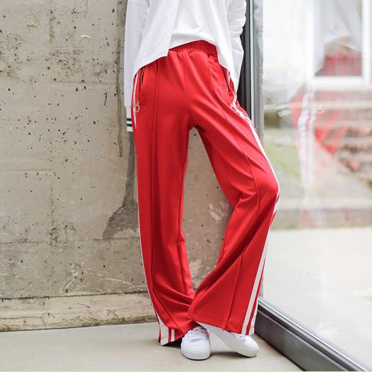 2017春季新款白条纹贴边运动裤校服裤开叉松紧腰休闲长裤子宽松女