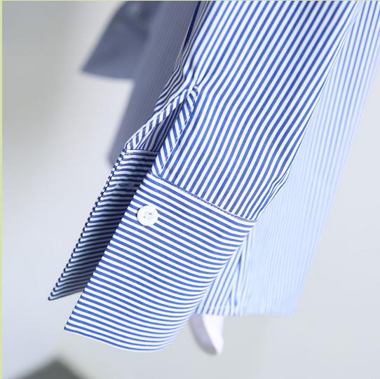 慵懒风的条纹衬衫,面料是含棉的,质感很好,还可以防嗮。 厚度适中偏薄,单穿或者外穿或者搭配在外套里面都OK, 条纹的颜色蓝色很正,干净简洁款,大爱衬衫,喜欢里面搭配个白T之类, 干净清爽,做工细节都不错,版型是宽松设计的,面料舒服,亲肤~ 性价比挺高的,这款慵懒范儿的适合喜欢宽松的妹纸哦, 衣橱必备