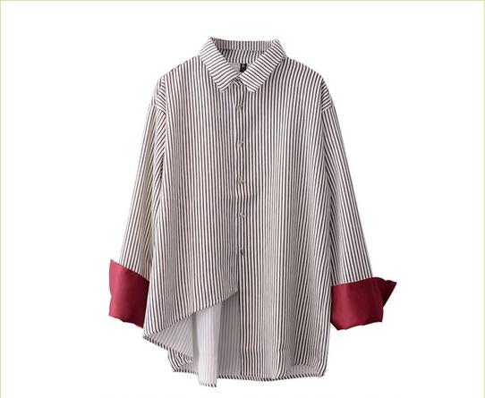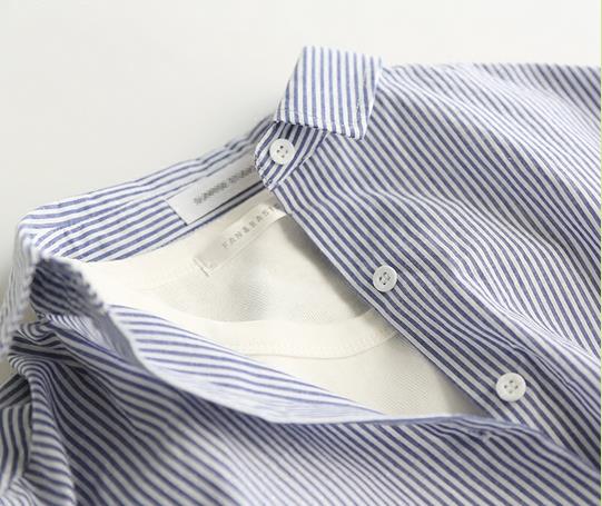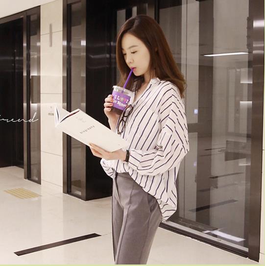 2017春装新款港味蓝白条纹衬衫打底衫女长袖宽松韩版衬衣百搭韩范