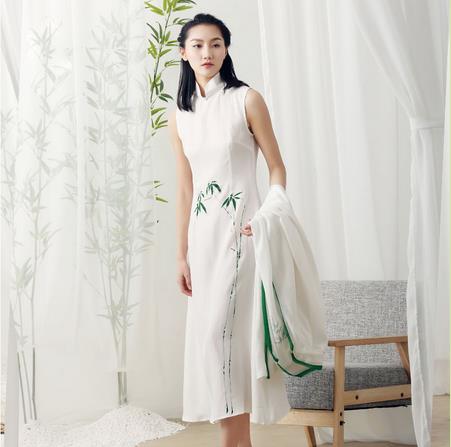 陶渊明独爱莲之“出淤泥而不染、濯清涟而不妖”的清纯之感,将莲花的品质作为自己毕生追求的目标。以花自比、自我摆正自己对待生活的态度,这不伐是一件陶冶情操的事情。舒适棉麻面料,结合旗袍的样式,更能体现“莲”的这种感觉。