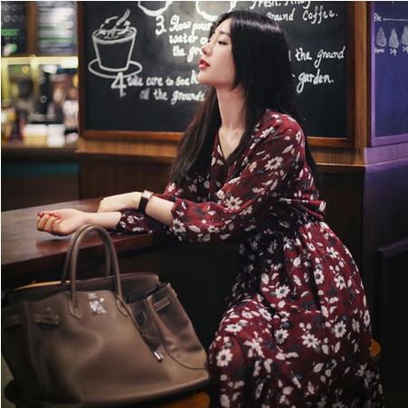 ◆碎花雪纺连衣裙子长袖