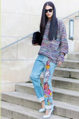 Gilda Ambrosio的Oversized毛衣仿佛将所有色彩融化在里面,牛仔裤也不甘单调,绚丽绣花把冷淡抛开、与基本款区别开,上下宽松舒适显瘦,色彩清新不俗,完全看不到岁月的痕迹。