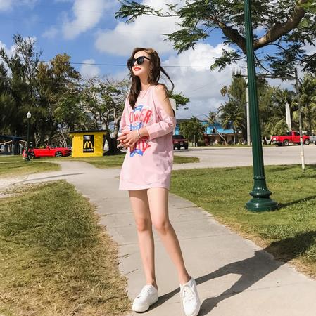 不知道从什么时候开始了这种下半身失踪搭配法则,一件长长的T恤裙,当然最好里面还是穿上短裤防止走光哦,肩膀处做了单边露肩的设计,区别两边露肩的t,打破常规,个性又时髦,天气没那么热的时候,可以直接搭配短靴。