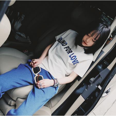 因为喜欢,所以爱的很盲目,很投入,这件短袖第一眼看到就爱的很盲目。英文字母颜色用的青石金蓝,把白色T恤装点的很有特点,简单的东西不需要太复杂,随便穿就可以穿出自己的个性。