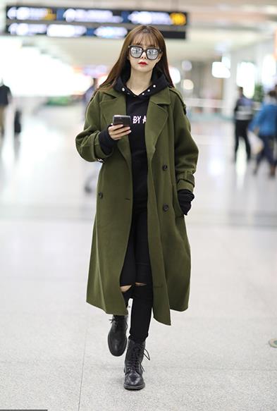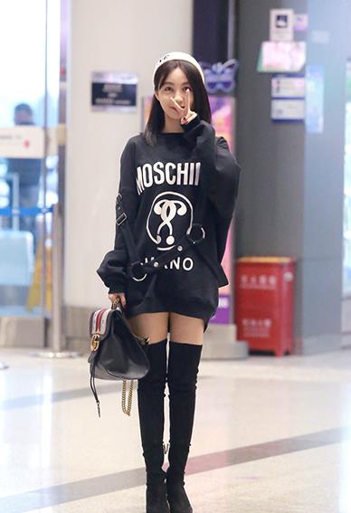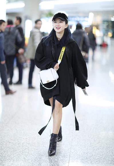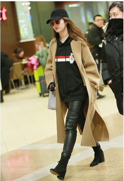 身材比较娇小的女生也无需担心hold不住,你可以像何洁一样直接把这种廓形的宽大卫衣当裙子,帅气又女人味满分