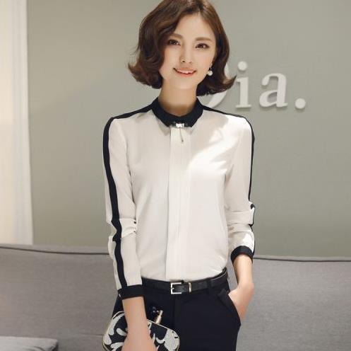 2017春装新款职业衬衣立领宽松雪纺衫百搭打底衫