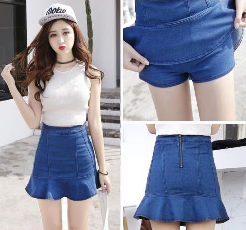 高腰牛仔半身裙女包臀短裙A字裙荷叶边鱼尾裙半裙裤裙夏
