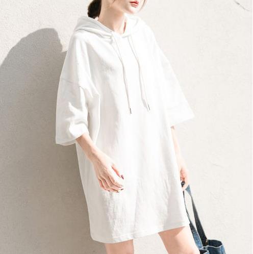 宽松连帽套头卫衣连衣裙,休闲宽松的版型,能够很好的遮肉现实,再加上纯白色的色系,打造青春活力的少女气色与姿态。