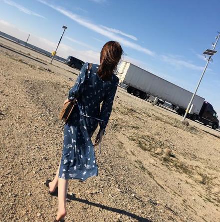 印花长袖连衣裙长款碎花长裙子春秋女装