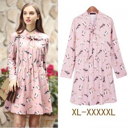 非常惬意精美的一款,可爱俏皮的小猫图案,今年大热流行的元素,给人一种欢快、雀跃的时尚感,小清新呼之欲出,圆领,长袖,尽显利落与洋气,十分好穿哦。腰间细细的橡筋设计,带着几分蓬蓬感,有种娃娃般的甜美呢。