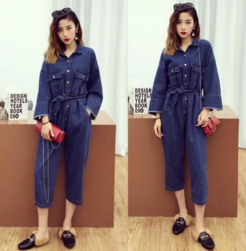 如果你苦恼于怎样搭配,不妨选择连体的牛仔裤,宽松休闲的款式穿着起来非常百搭,而且微胖的女孩更是看不出身上的肉肉,加上一条系带搭配,又不会过于单调,还能收腰显瘦,再加上一款毛毛的单鞋搭配,简单又时尚。