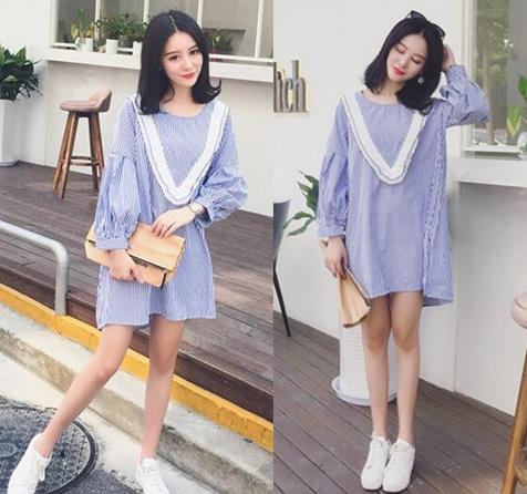 连衣裙也是非常好搭配,简约大方的款式让你无需费心怎样搭配,宽松的版型穿起来轻松遮肉显瘦,加上荷叶边的设计尽显甜美感,泡泡袖的设计更是遮掩手臂的赘肉,脚上搭配一双百搭的小白鞋,简洁又好看。