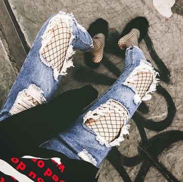 大破洞的牛仔裤,是每季都会有的,特别是春夏,我觉得大破洞配白T尤其好看!帅气又随性,现在这个季节搭配风衣外套,下身穿上这条破破的牛仔裤进行混搭,都很时髦~这条的显瘦效果也是超nice~对了 这款裤子也可以搭配最近超流行的网袜穿哦