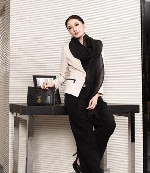 黑色九分阔腿裤使得腿部的线条更加修长,腰显得更加的纤细,搭配上米白色的西装外套以及黑色的高跟鞋,处处彰显着都市女性的强大气场。