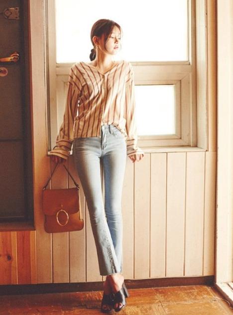 稍许低调的宝宝们更钟情于这类微喇的喇叭裤,没那么夸张,但又能轻松打破衬衫原有的正式和严肃感。高腰穿法更是能塑造美腿杀。