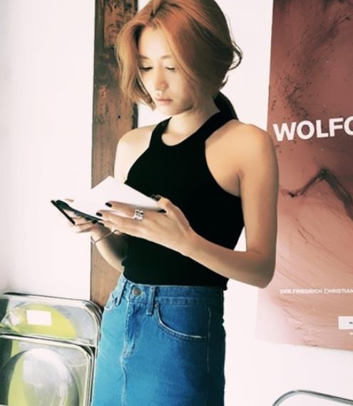 搭配看点:这套搭配非常具有复古气息。不过首先要说明哦,牛仔半身裙及膝的长度,不是很适合个子娇小的菇凉穿搭哦。因为及膝的长度很容易显腿短,如果小个子菇凉要购买牛仔半身裙的话,建议选择长及大腿中部的款式,露出更多腿部肌肤不仅性感,还显高哦。灰色中袖打底衫中低领的设计本身就极具复古气息,搭配一款牛仔高腰半身裙,更显柔美清新气质,一款棕色mini小包,呼应发色又十分可爱呢。