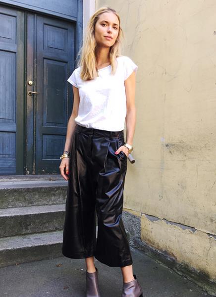 说说造型:不贴身的舒适T恤基本都不会把人穿胖,皮质阔腿裤除了有帅气,还把大腿到小腿的部位都完美的修饰掉;粗跟的鞋子也适合不习惯穿高跟鞋的MM。