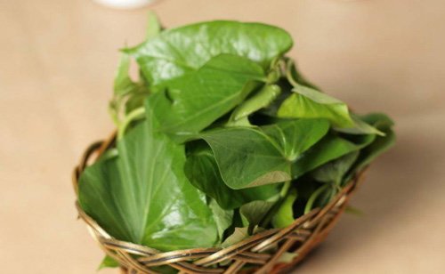 地瓜叶纤维质地柔细、不苦涩,容易有饱足感,又能促进胃肠蠕动、预防便秘。把新鲜地瓜叶洗净后用开水烫熟捞起,与剁碎的大蒜及少许盐、油拌匀,就是一道美味爽口的蒜拌地瓜叶!