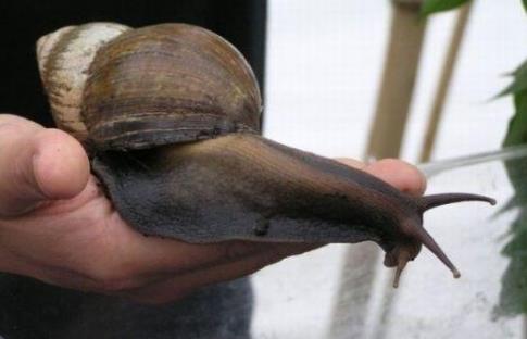 蜗牛的种类很多,全世界约有2.2万种, 不同种类的蜗牛体形差异很大,常见的蜗牛 体长4 —— 8厘米,有些野生蜗牛不到1厘米,体形最大的要数非洲玛瑙螺(giant african snail),长达30厘米,壳 高15.4厘米,直径8厘米,是世界上最大的蜗牛。